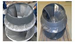 雙組分,以特種金屬碳化物、納米復合超硬顆粒為骨材、DNI-PDMG預聚體為基礎(chǔ)的耐磨復合材料,具有超強耐磨性、柔韌性、耐水、耐油、耐酸堿性。適用(-60℃-250℃)惡略環(huán)境中設(shè)備過流沖蝕(顆粒大于50mm)、設(shè)備的局部修復、設(shè)備預涂耐磨層,如旋流器、浮選柱、浮選機、泡沫槽、分級機、攪拌桶、溜槽、管件類、渣漿泵、脫硫泵、污水泵、往復泵、隔膜泵等泵類修復(典型用途見主要物理機械性能表)。