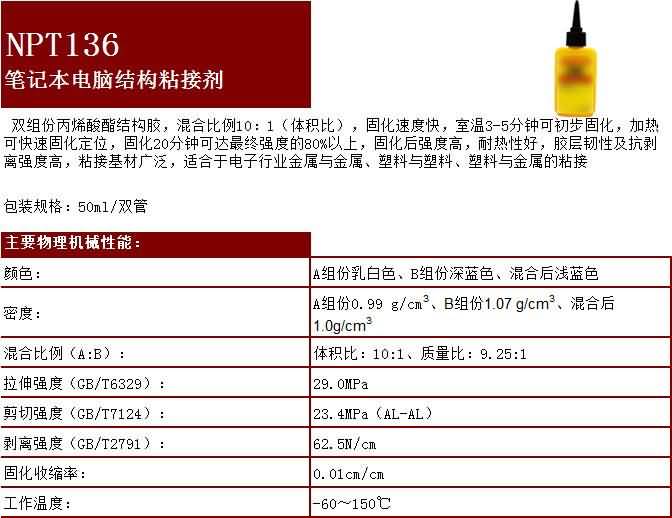 NPT136筆記本電腦結構粘接劑