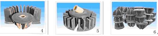 圖4、5、6為浮選機(jī)轉(zhuǎn)子、定子,使用橡膠修復(fù)劑(NPT129、NPT130、NPT131),設(shè)備專用修復(fù)劑(NPTJ30、NPTJ16),使用壽命達(dá)到原件使用壽命2倍;