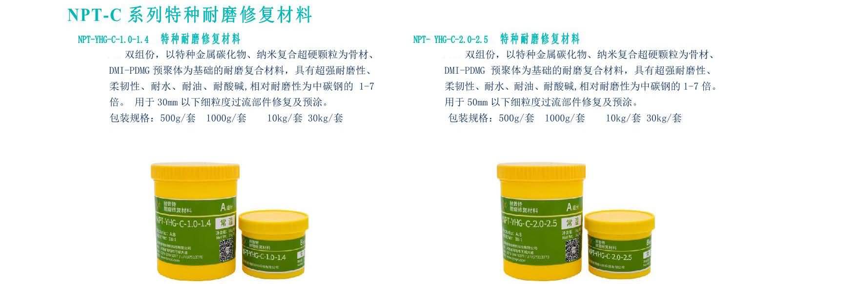 雙組分,以金屬碳化物、納米復合超硬顆粒為骨材、DNI-PDMG預聚體為基礎的耐磨復合材料,具有超強耐磨性、柔韌性、耐水、耐油、耐酸堿性。適用(-60℃-80℃)惡略環(huán)境中設備過流沖蝕(顆粒大于50mm)、設備的局部修復、設備預涂耐磨層,如旋流器、浮選柱、浮選機、泡沫槽、分級機、攪拌桶、溜槽、管件類、渣漿泵、脫硫泵、污水泵、往復泵、隔膜泵等泵類修復(典型用途見主要物理機械性能表)