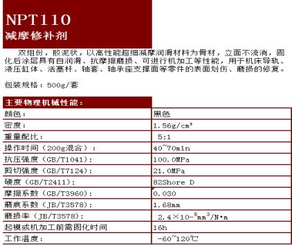 NPT-110減磨修補劑,其性能為: