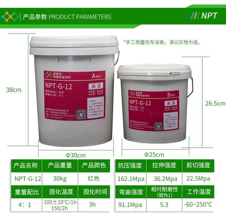 雙組分,以陶瓷、金屬碳化物、微型顆粒為骨材的耐磨復合材料,具有耐水、耐油、耐酸堿性。適用(-60℃-250℃)設備過流沖蝕、設備的大面積修復、設備預涂耐磨層,如旋流器、浮選柱、浮選機、泡沫槽、分級機、攪拌桶、溜槽、管件類、泵類等修復(典型用途見主要物理機械性能表)。
